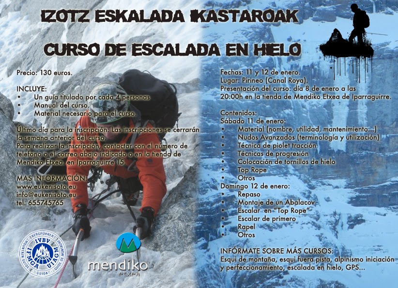 Nuevo curso de hielo 11 y 12 de enero. Más información en info@eukenisoto.eu. Plazas limitadas. Anímate!!