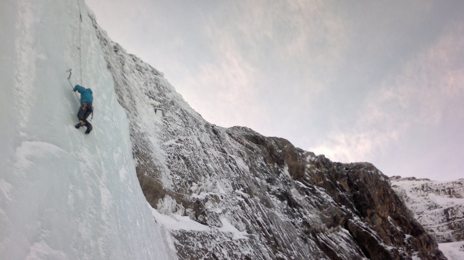 Esta semana con la subida de la isocero nos hemos subido al segundo muro de Gavarnie en busca de algo de hielo. El hielo, aunque un poco escaso para como suele estar, estaba en muy buenas condiciones. Lo duro como siempre es la aproximación, nieve sin transformar y sin huella ya que esta se borraba con el viento. La hicimos con esquís pero aun así no había mucha nieve y muchas piedra estaban visibles. Os dejo unas fotos ya que una imagen vale mas que mil palabras.