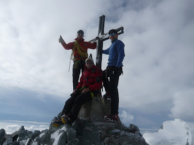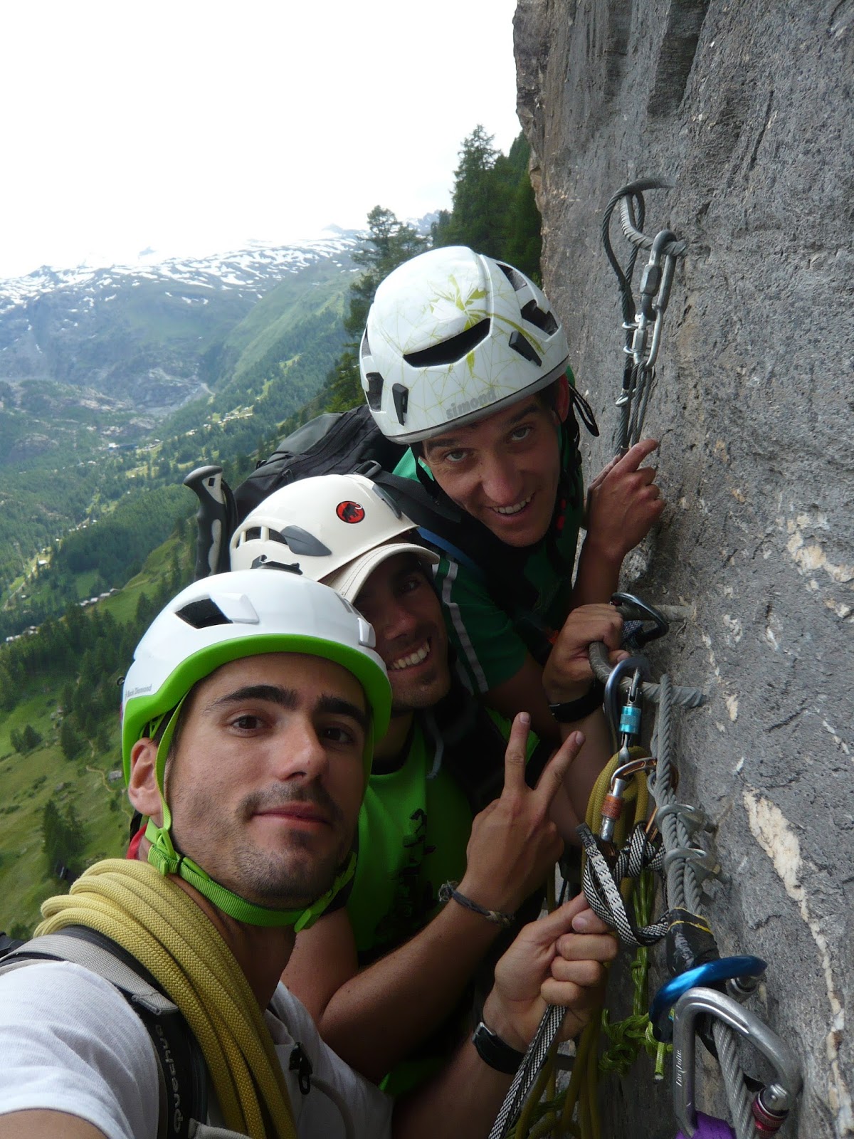 Esta semana pasada hemos guiado por los Alpes Suizos al grupo de Pamplonicas que decidió faltar a su cita con San Fermín. El tiempo ha acompañado y nos ha permitido mostrarles la belleza de este rincón de los Alpes. Logrando el objetivo, hemos ascendido media docena de cuatromiles e incluso una vía ferrata desde donde podíamos contemplar el pueblo de Zermatt desde las alturas.