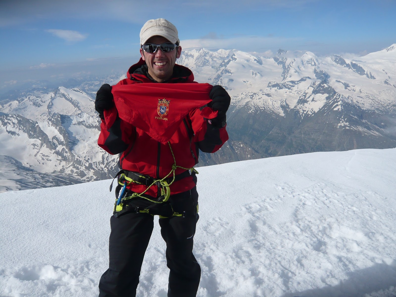 Fernando con el pañueliko rojo en la cima del Weismiess |